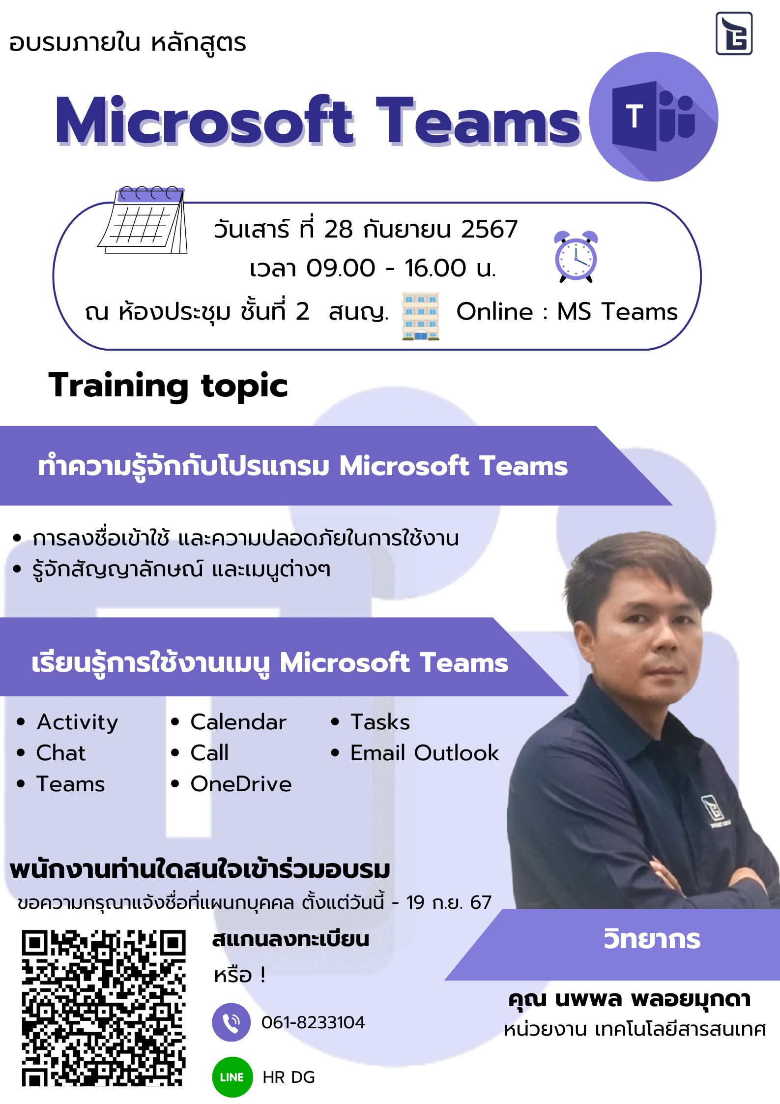 28 กันยายน 2567 เปิดครอสอบรม Microsoft Teams